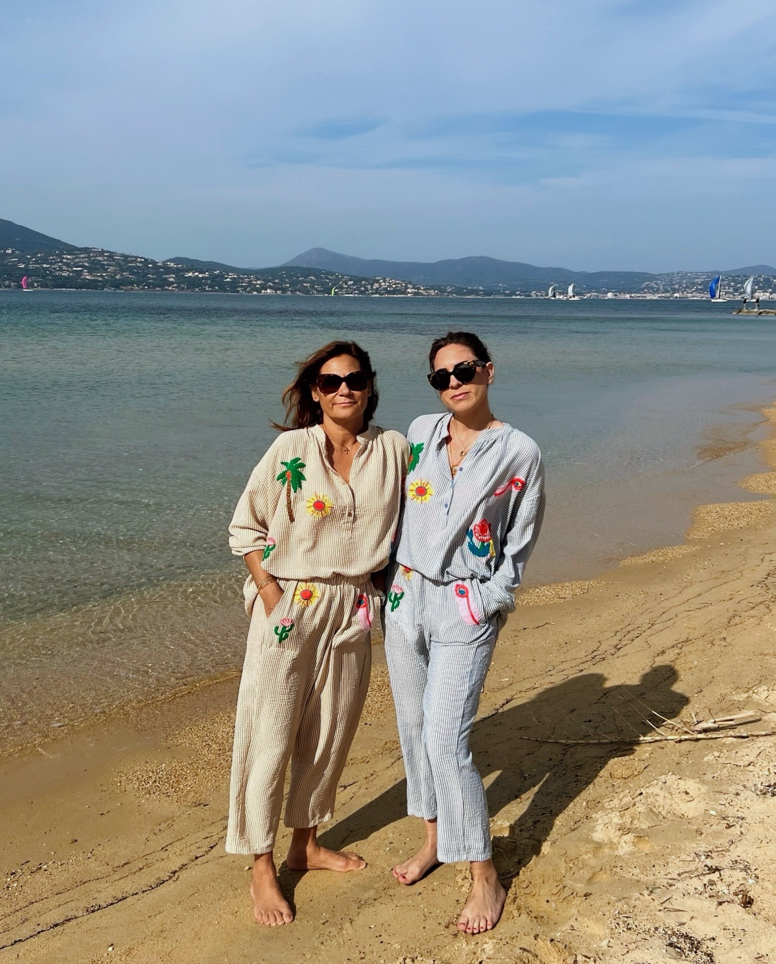 -Le mannequin porte l’ensemble rayé bleu avec la blouse Juliette.