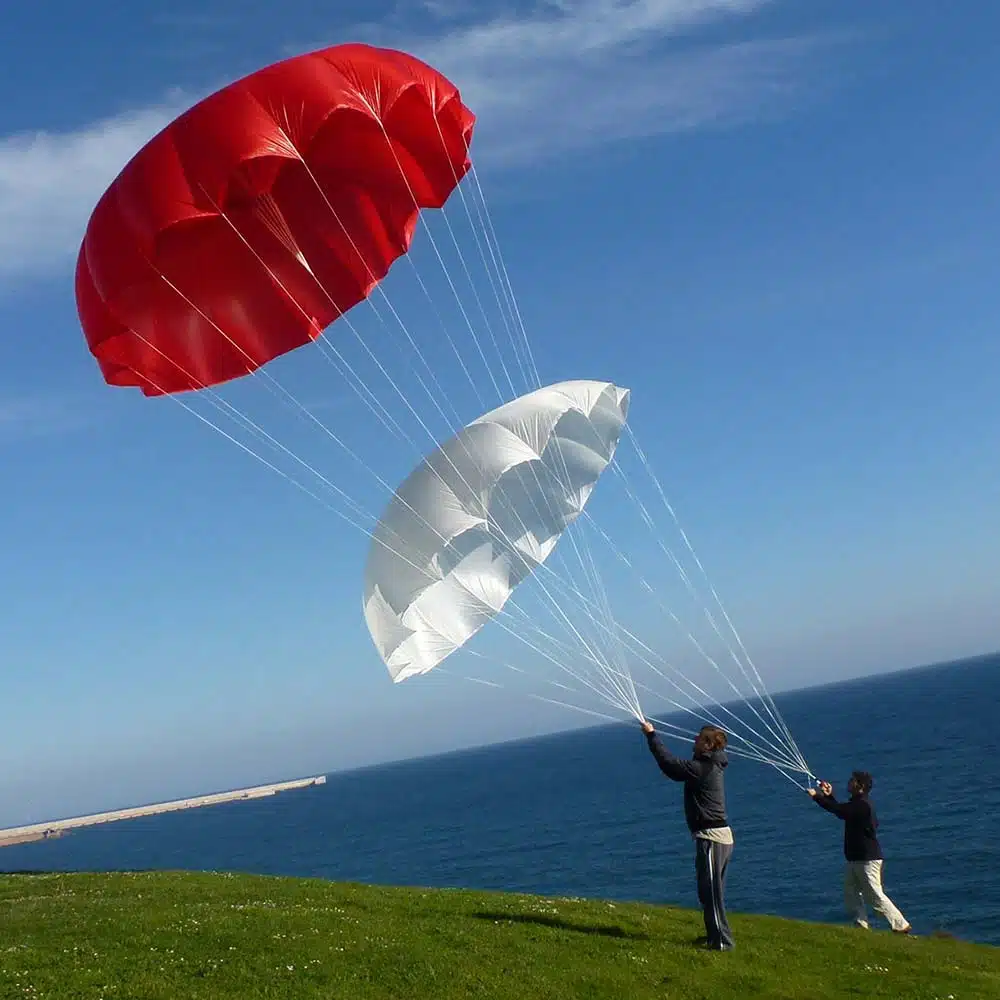 Equipé des suspentes avec les nouvelles fibres dynéma (qui garantisse une résistance supérieure et un poids inférieur aux anciennes) et d’un nouveau tissu, le parachute offre une compacité incroyable.