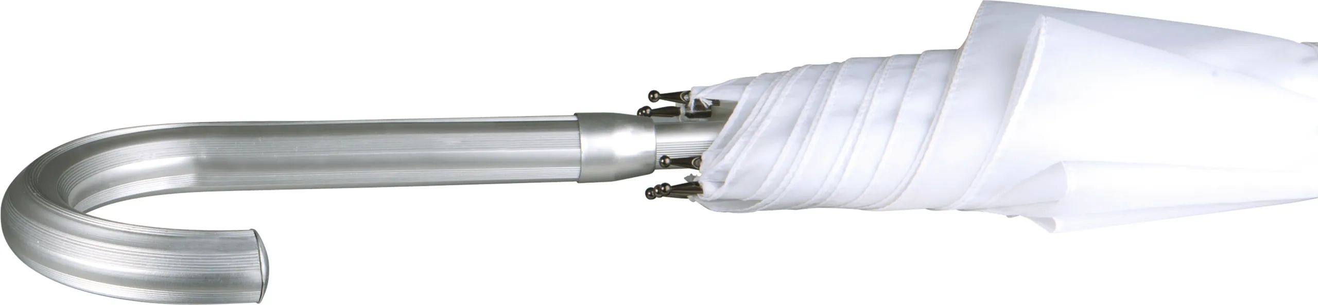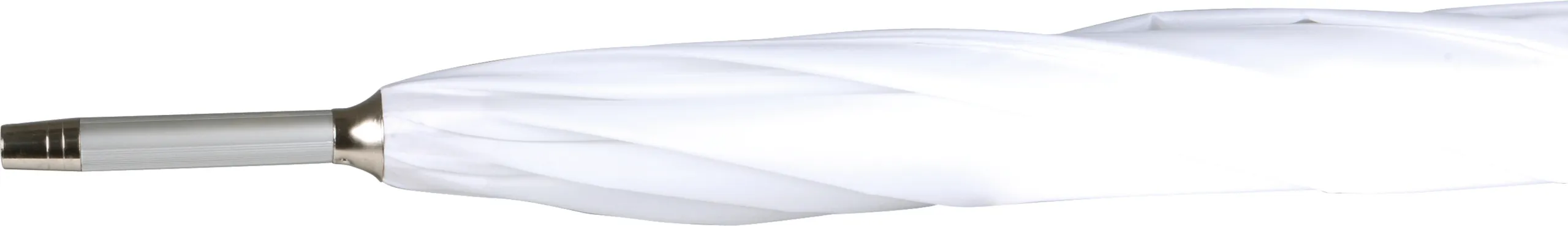 Parapluie 25″ (diamètre : 118 cm), ouverture automatique, mât en aluminium, baleines en fibres de verre et aluminium, poignée arrondie, toile en polyester 210T, embouts de baleine en métal. Silver : intérieur black.