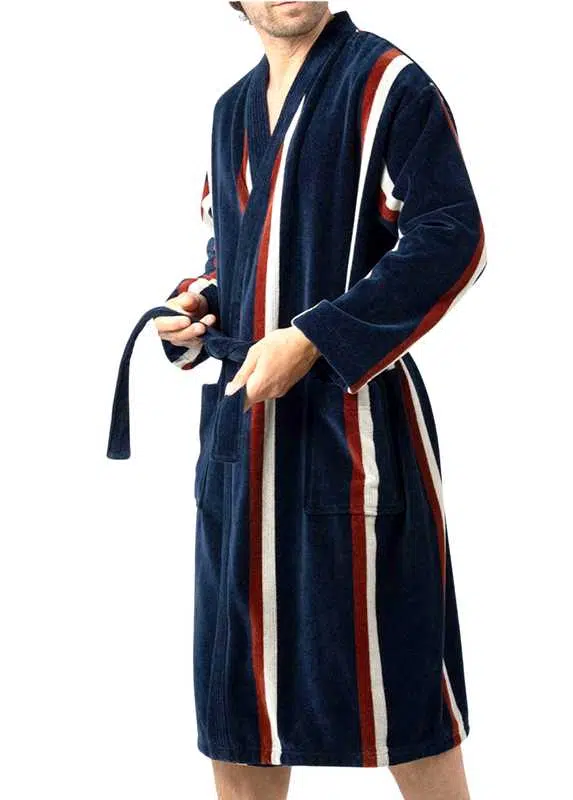 Voici un peignoir très élégant et très qualitatif. Dès sa prise en main, à son poids (1,1 kg) vous constaterez qu’il s’agit d’une pièce au coton épais et très agréable au touché. Son col châle contribue à en faire une pièce sobre que vous aurez plaisir à enfiler soit directement sur la peau au printemps, soit sur un pyjama en automne et hiver.