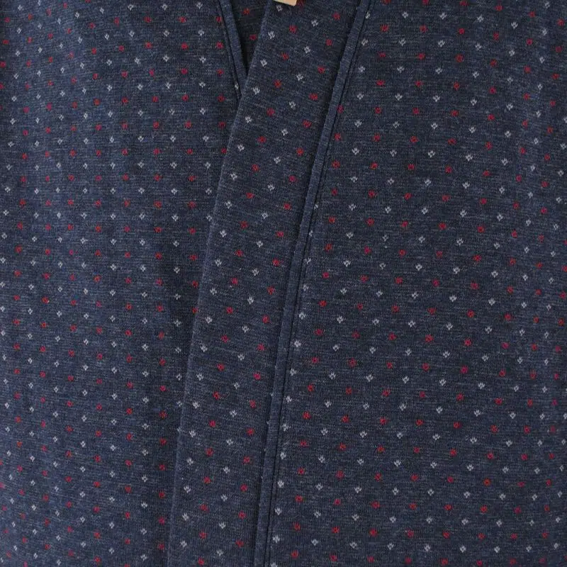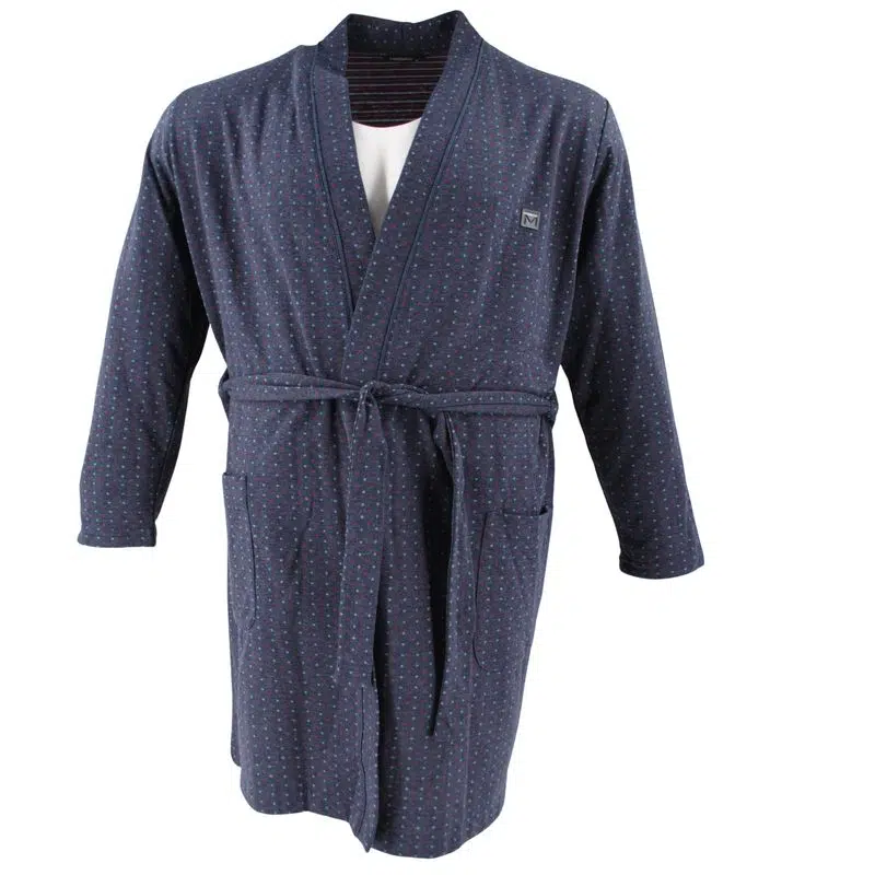 MASSANA propose un modèle automne hiver de son peignoir dans une couleur gris bleuté avec une petite fantaisie sobre. C’est un tissu peu épais tout en restant un modèle d’automne.