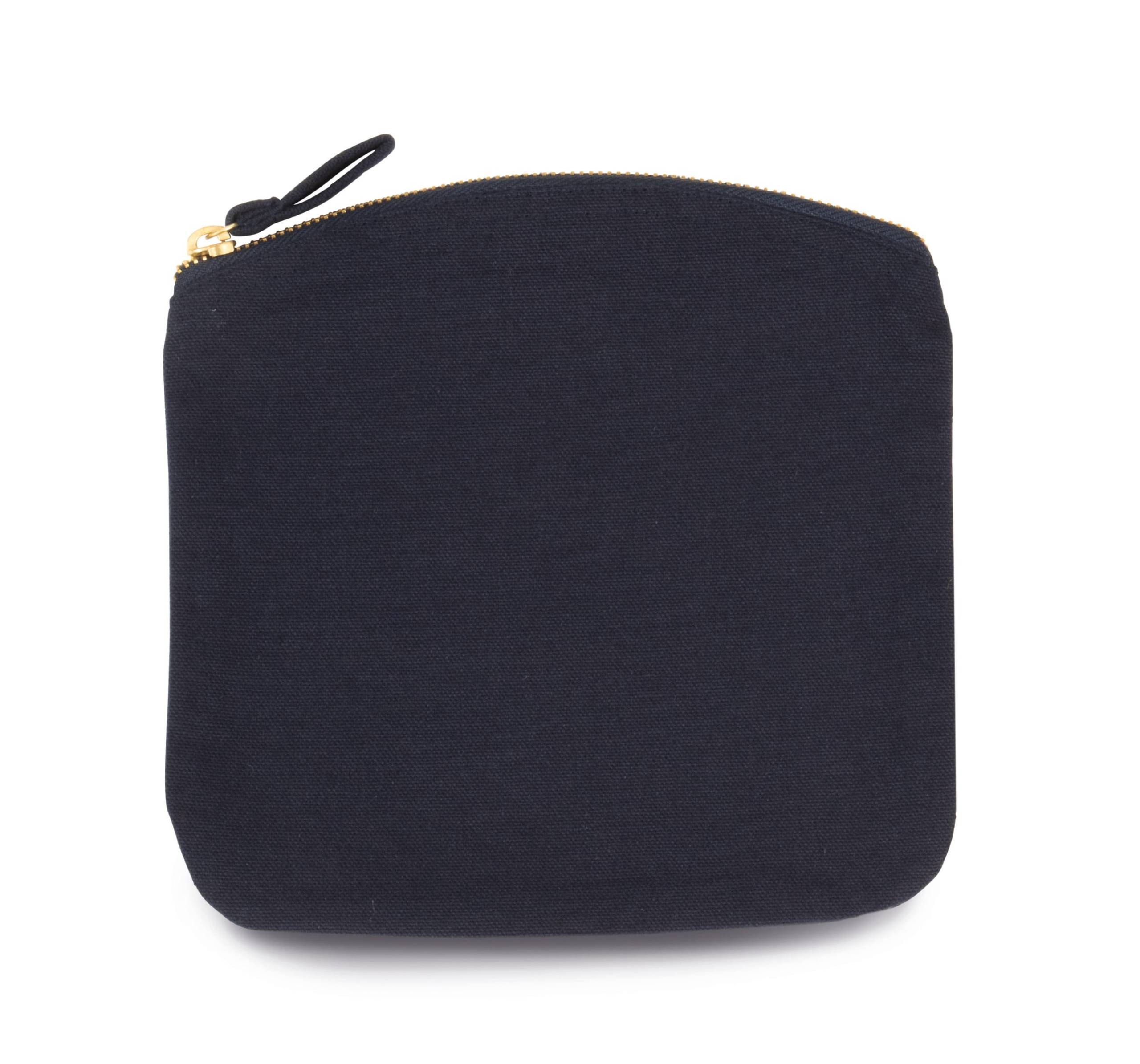 100% coton. Pochette en coton canvas dotée d’une fermeture glissière en métal. Existe en deux formats.