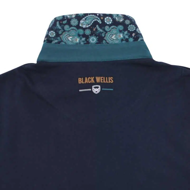 BLACK WELLIS vous propose ce polo sport bleu marine avec de nombreux détails. Le col avec son imprimé cachemire, un écusson sur la poitrine, une broderie dans le cou et sur un bas de manche. et des coudières. Le poignet est monté comme celui d’une chemise, ce qui peut permettre de porter ce polo avec le poignet retourné pour mettre en avant l’imprimé. Vous serez fier d’arborer ce polo très qualitatif et unique.