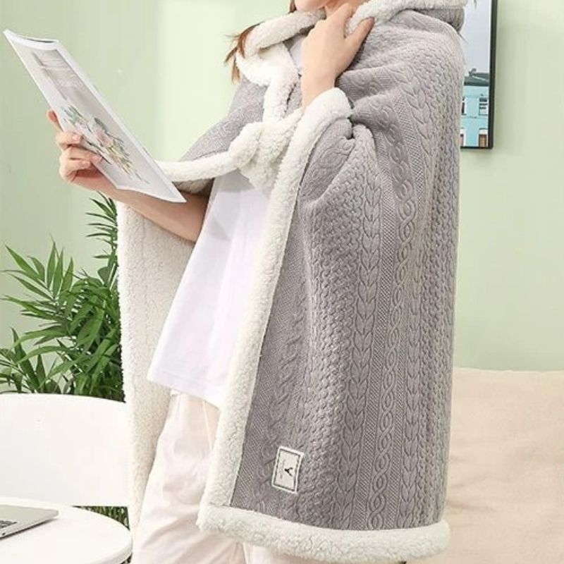 Poncho polaire couverture gris doublée en peluche blanche avec boutons pour femme