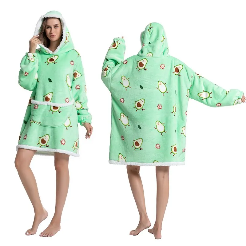 Poncho polaire femme à capuche à manches longues avec poche kangourou