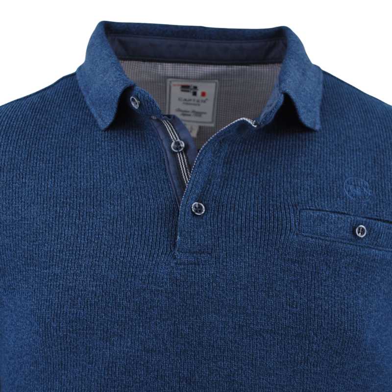 La marque française CAPTEN est réputée pour ses pull à la forme polo en mélange coton et polyester pour un rendu épais et très doux. Cette année c’est un modèle au mélange de fil bleu et noir avec bord côte sur les manches et le bas du pull. Un pull avec une petite poche poitrine boutonnée.