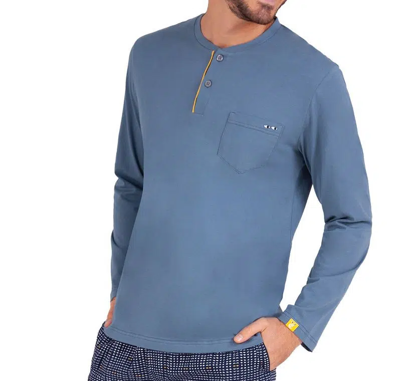 Tee-shirt manches longues col tunisien avec poche poitrine