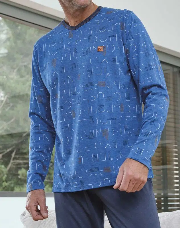 Pyjama col V en coton et en modal ce qui en fait un pyjama d’hiver pas trop épais et très doux.