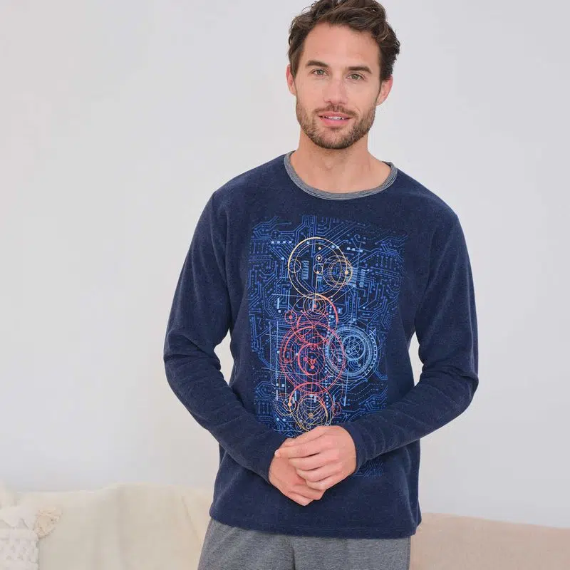 Pyjama homme MASSANA col rond imprimé bleu