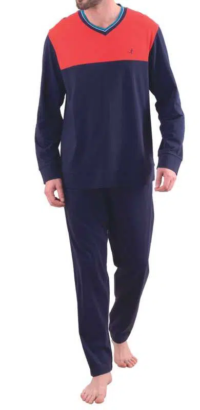 Pyjama long col V EMINENCE 7V24 marine et orange