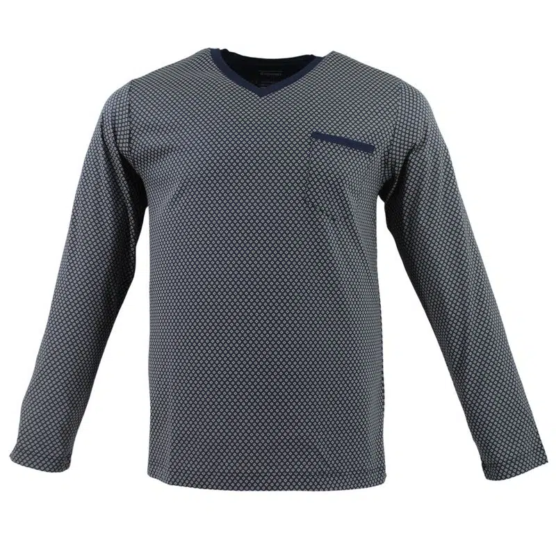 Pyjama léger en coton doux qui vous donnera une allure moderne avec son t-shirt à la fantaisie géométrique. Certains apprécieront la poche poitrine. Le pantalon possède 2 poches.
