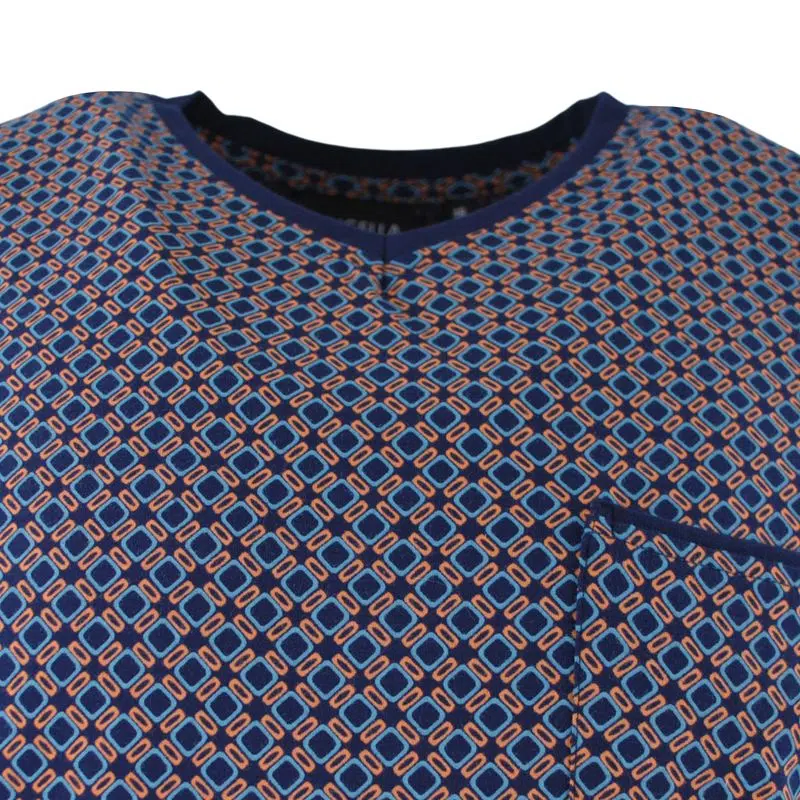 t-shirt manches courtes au motif graphique coloré sur un fond nuit, un haut avec un col V et avec poche poitrine. Les pyjamas RINGELLA sont réalisés dans des cotons d’une belle tenue.