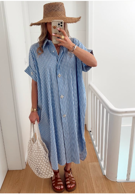 Portez-la avec des sandales plates et un sac filet pour un look casual-chic. Pour un effet plus habillé, ceinturez-la à la taille et ajoutez des bijoux dorés. Le combo parfait pour une balade en bord de mer ou un déjeuner en terrasse.