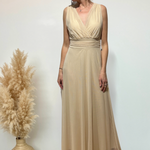 Associez cette robe à des escarpins ou sandales dorées, une pochette assortie et des bijoux fins pour sublimer son côté fluide et raffiné.