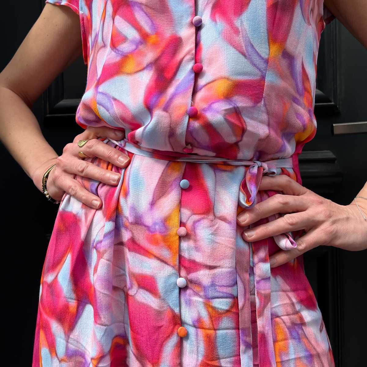 Voici votre nouvel imprimé préféré : l’imprimé tie and dye rose flash. Ultra frais pour les beaux jours, cet imprimé est juste WAHOU !