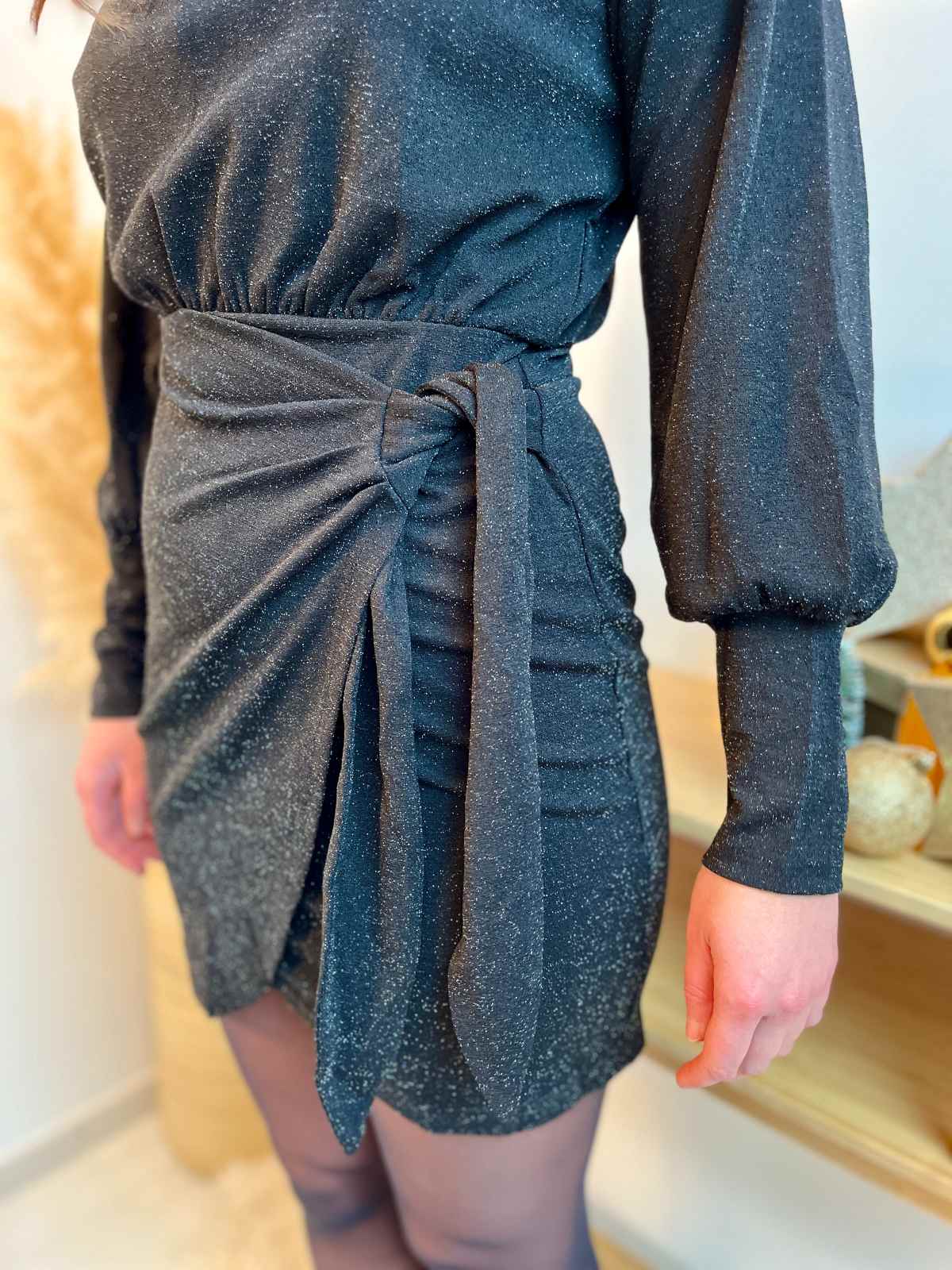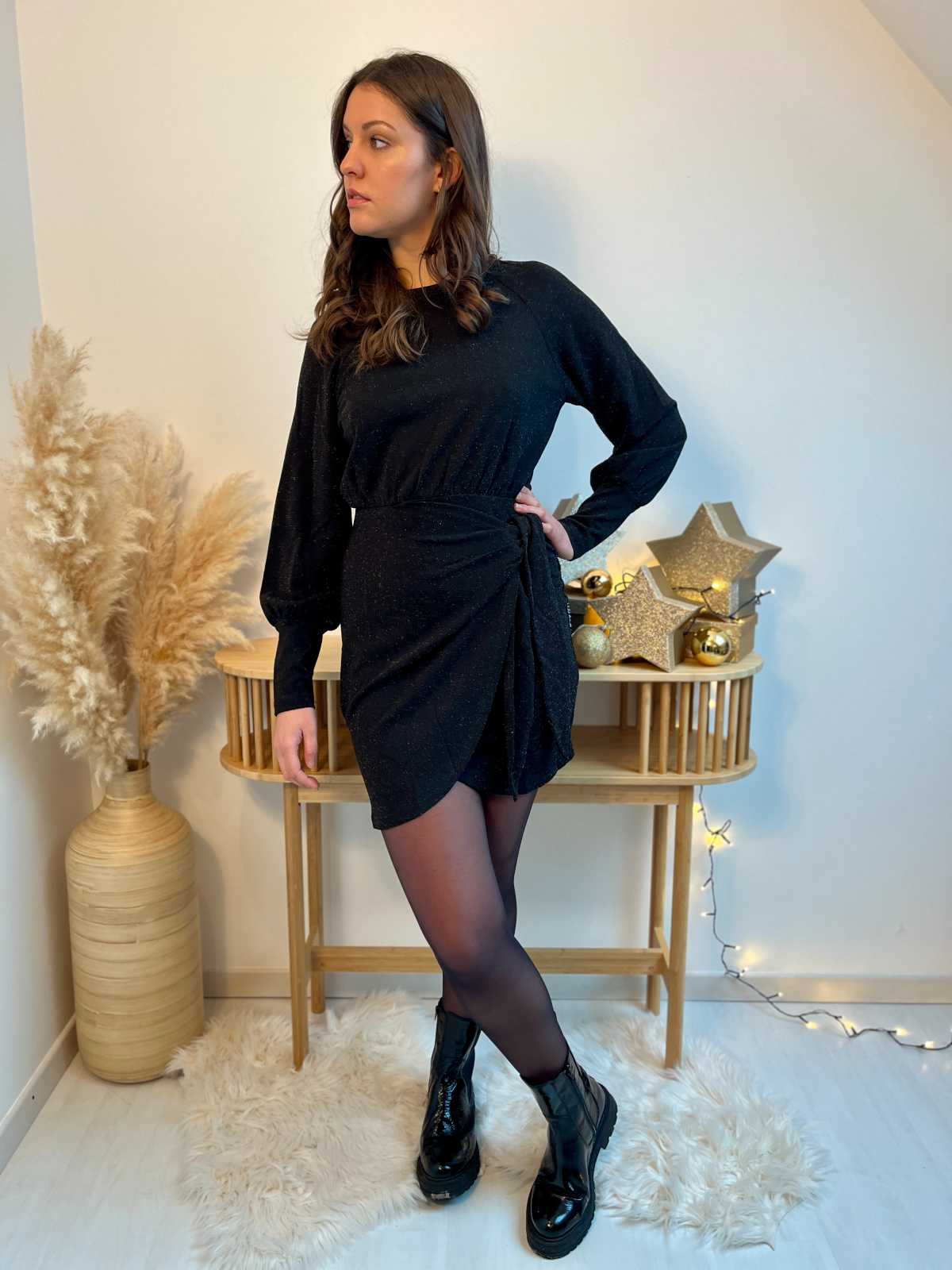 Optez pour l’élégance avec cette robe courte noire à manches longues et son détail raffiné : un nœud sur le côté qui apporte une touche féminine et tendance.