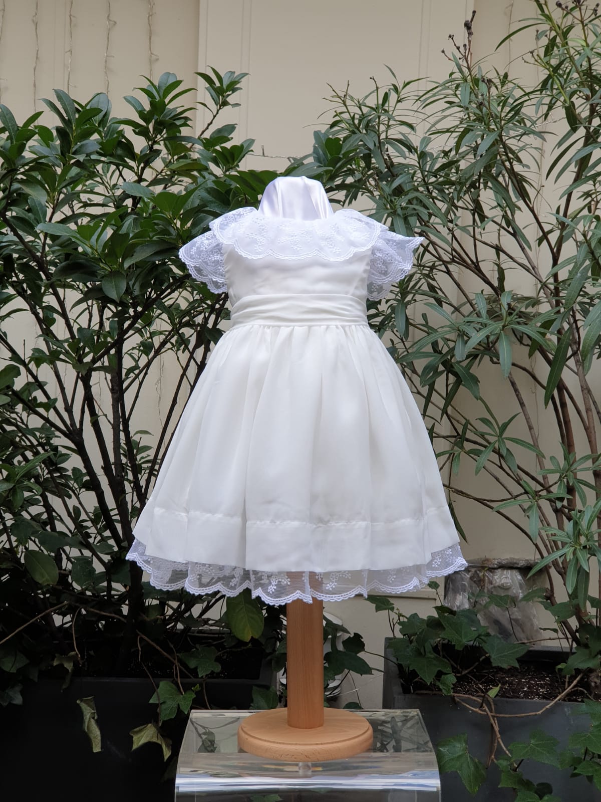 La robe courte robe Valérie cette robe de BAPTEME est en voile blanc cassé avec dentelle blanche et est double coton le prix 65 euro