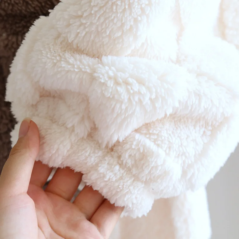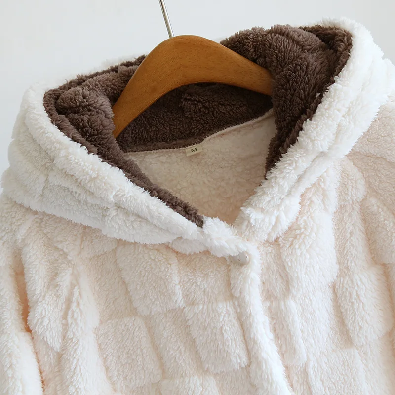 Cette splendide robe de chambre longue polaire à capuche oreilles pour femme mi-longue est dotée de deux poches marron pratiques. Le design bicolore est non seulement moderne, mais aussi élégant, se démarquant des robes de chambre traditionnelles. La capuche, ornée de petites oreilles, ajoute une touche de fantaisie mignonne.