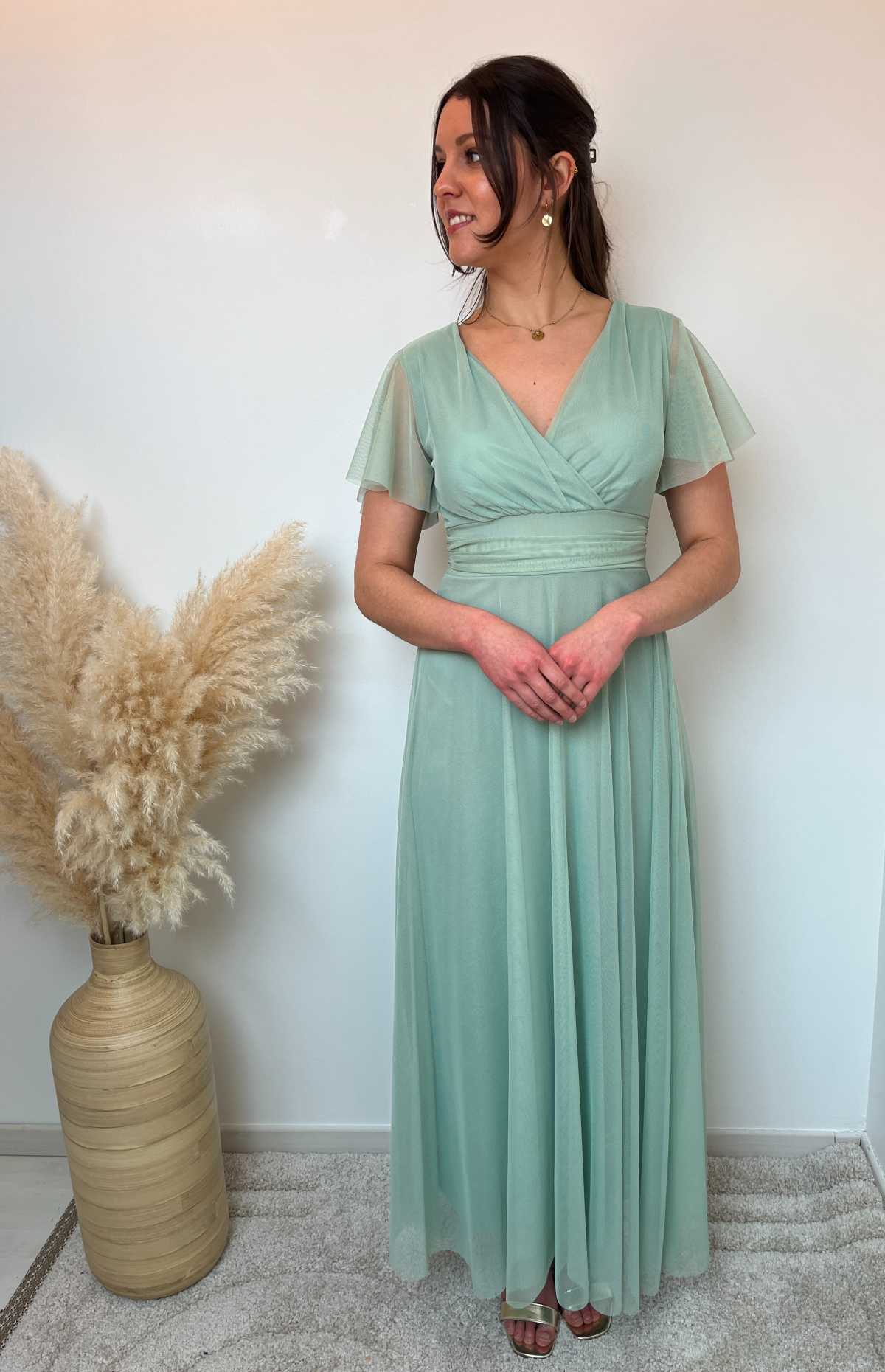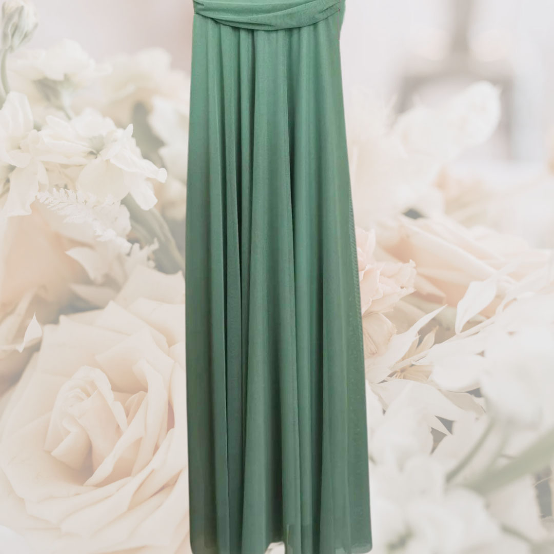 En plus du modèle décliné en vert sauge pour un look doux, elle est également disponible en vieux rose, vert sapin,, corail, terra cotta et bleu marine, permettant de choisir la longue robe pour mariage qui vous ressemble le plus.