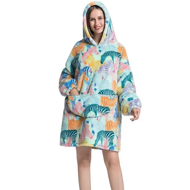 Ce sweat plaid multicolore avec zèbre, destiné aux hommes et aux femmes adultes, se démarque par sa taille parfaite, adaptée à toutes les morphologies grâce à sa taille unique. Sa largeur généreuse garantit un confort optimal pour vos jambes lors de vos déplacements. De plus, il est pourvu d’une grande poche kangourou en sherpa, vous permettant de garder vos mains au chaud tout en ayant vos petits objets préférés à portée de main. Profitez des meilleurs moments de bonheur, seul, entre amis ou en famille, bien au chaud et confortablement installé.