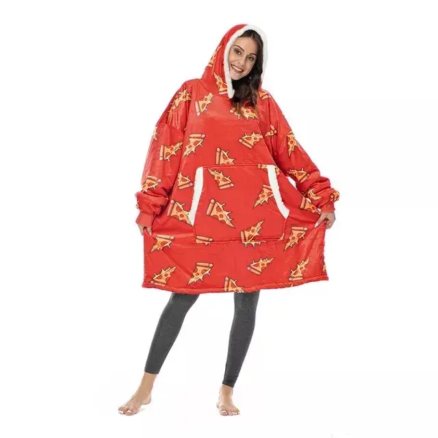 Devant un matche de sport, une soirée entre amis ou tout simplement pas envie de faire à mangé, ce sweat plaid pizza est fait pour vous!