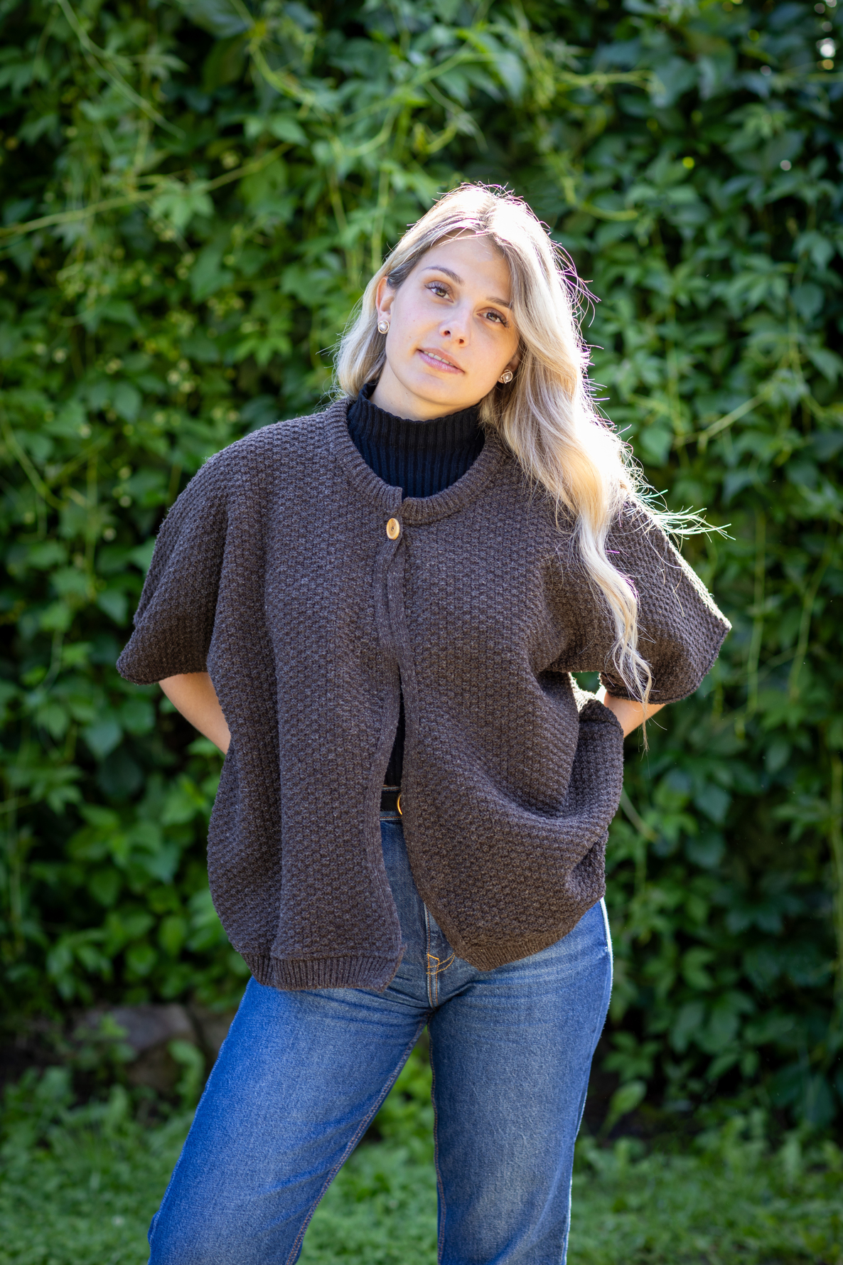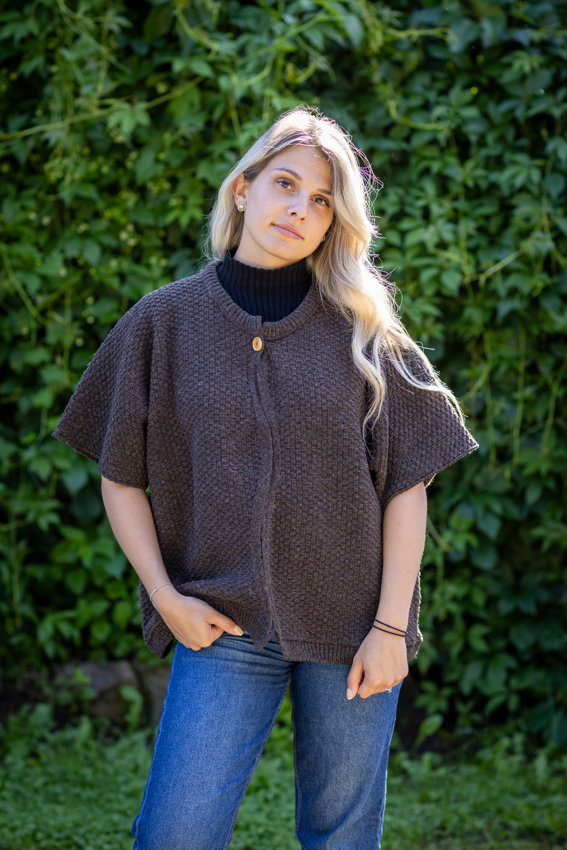 Bolero Tarasconnaise pour femme, sans manches et 100% laine, avec un petit bouton pour le maintenir en forme.