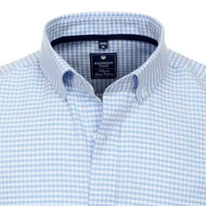 chemise homme Redmond vichy bleu ciel col boutonné en coupe large