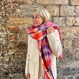 ECHARPE A FRANGES VIOLET ORANGE